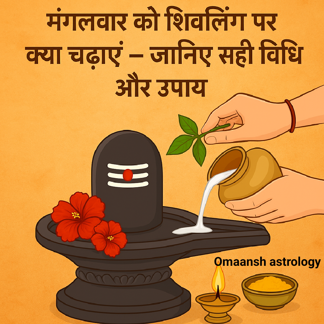 मंगलवार को शिव पूजन करने से मंगल ग्रह के दोष, क्रोध, रक्त संबंधी रोग और जीवन की रुकावटें दूर होती हैं। यदि आप अपने जीवन में शक्ति, साहस, स्थिरता और सफलता चाहते हैं, तो मंगलवार को शिवलिंग पर विशेष वस्तुएँ चढ़ाना अत्यंत शुभ होता है। आज ओमांश एस्ट्रोलॉजी मंगलवार के दिन शिवलिंग पर क्या चढ़ाने से मनो वांछित फलों की प्राप्ति होती है!